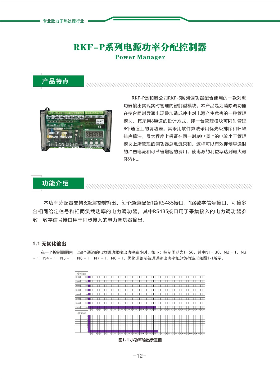 RKF-P是和我公司RKF-6系列調功器配合使用的一款對調功器輸出實(shí)現實(shí)時(shí)管理的智能型模塊。本產(chǎn)品是為消除調功器在多臺同時(shí)導通出現疊加造成沖擊對電源產(chǎn)生危害的一種管理模塊。其采用8通道的設計方式,即一臺管理模塊可同時(shí)管理8個(gè)通道上的調功器。其采用軟件算法采用優(yōu)先級排序和歸堆排序算法,最大程度上保證在同一時(shí)刻電源上的電流小于管理模塊上所管理的調功器總電流只和。這樣可以有效抑制導通時(shí)的沖擊電流和可節省增容的費用,使電源的利益率達到最大最經(jīng)濟化。